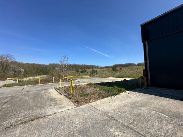 Espace de dégagement avant et latéral permettant manœuvres de véhicules utilitaires, camionnettes ou remorques.