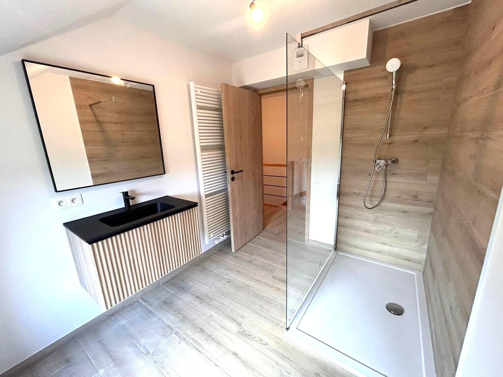 • Une salle de douche supplémentaire avec meuble lavabo et douche