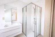 Une salle de douche (douche, meuble lavabo)